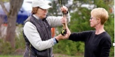 4CFF members Marion Hiller and Frank Koterba, FFI Certified Casting Instructors, and instructing assistant Klaus Lohse provided hands-on fly casting instruction to students attending NSEA's Fishing Camp.